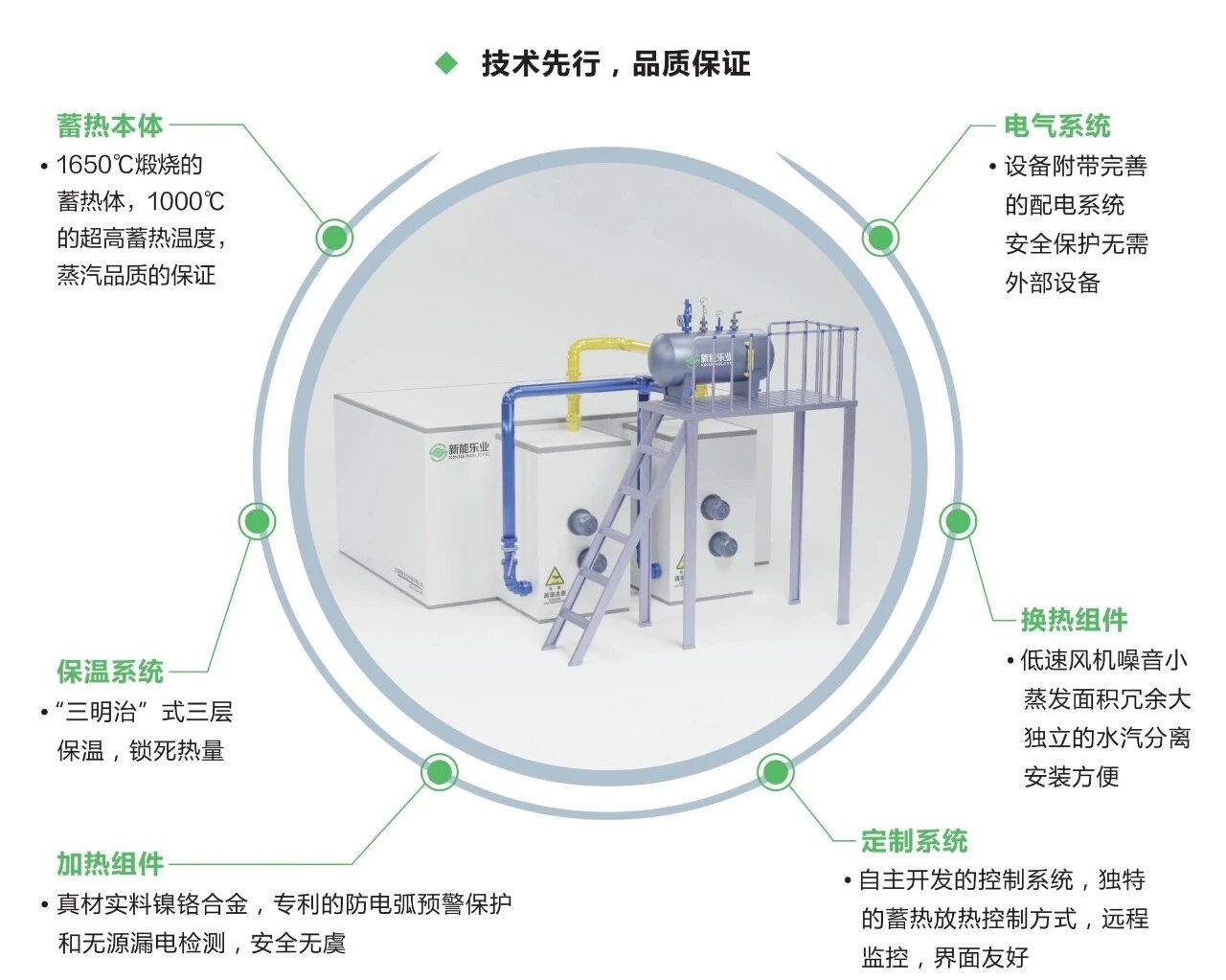 新能乐业生产的蓄热型电加热装置占地面积小、安全无污染、运行成本低,兼具智慧运行和自动报警,可取代传统的燃煤锅炉、燃气锅炉、燃油锅炉,真正意义上做到零排放,是“煤改电”理想的解决方案。